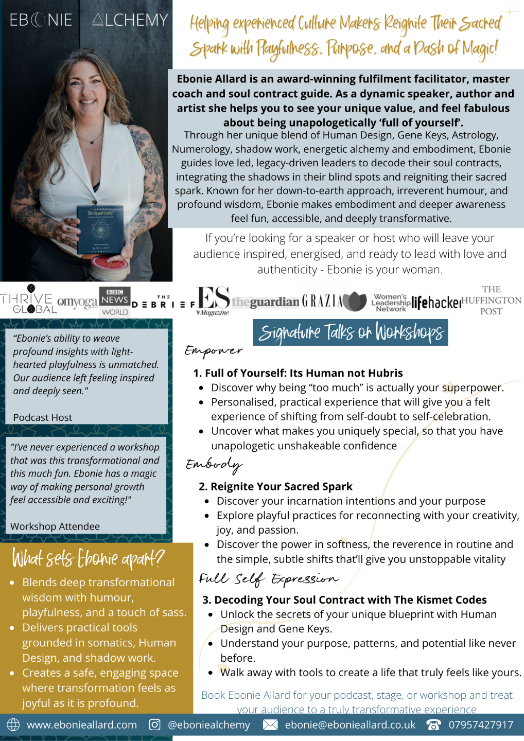 With nearly three decades of experience helping purpose-driven individuals align with their unique gifts, Ebonie specialises in turning overwhelm and disconnection into freedom and fulfilment.