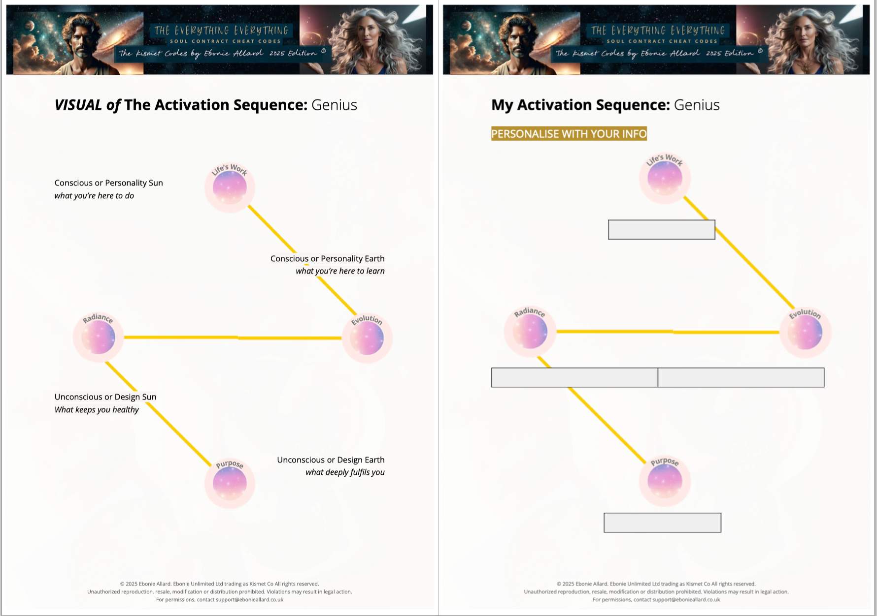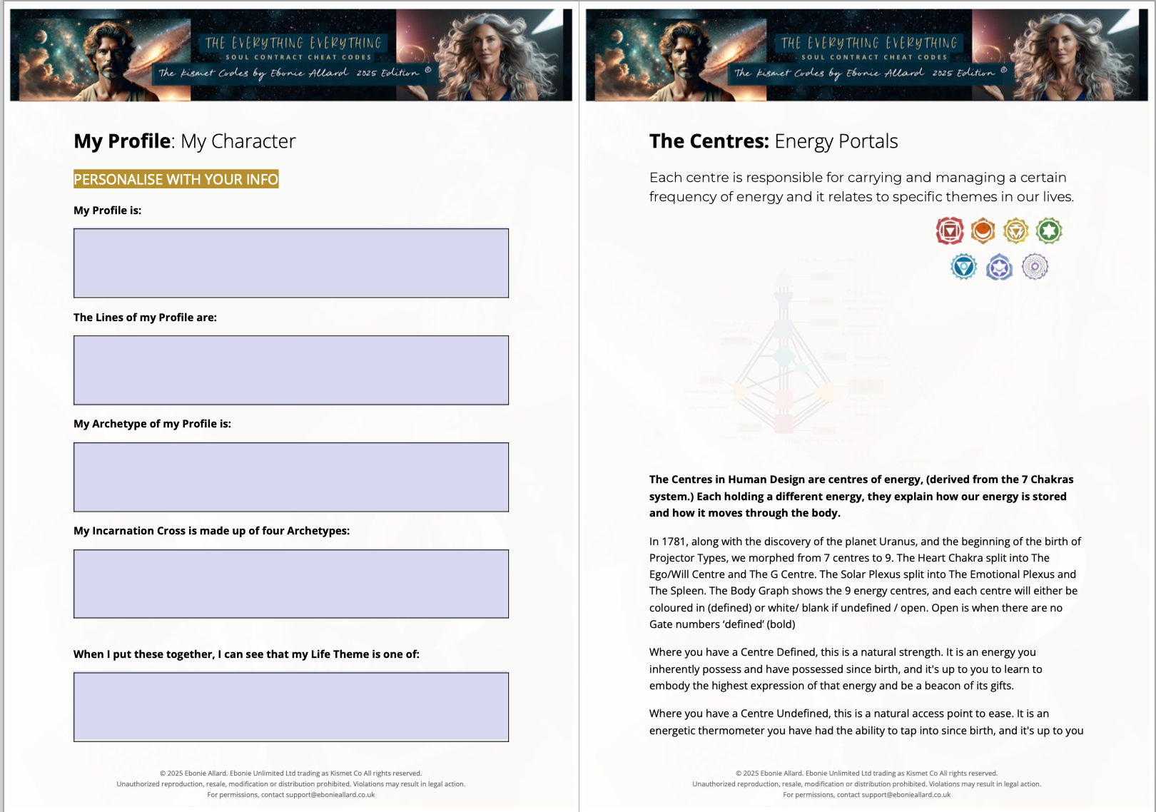 Includes everything you need to know about your Human Design, Astrology, Gene Keys, Numerology, and the embodiment of your unique design and personalised Soul Contract.
